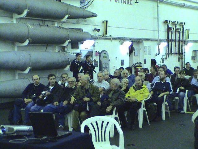 Saliamo a bordo della "Garibaldi" accolti in modo encomiabile dal Comandante in seconda C.F. Galasso e dai suoi subalterni che ci illustrano i vari "settori" della nave e ci accompagnano poi alla loro visita.